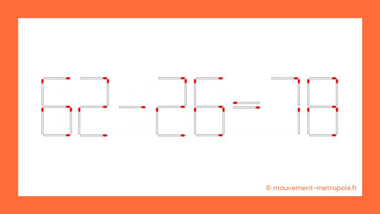 Défi mathématique : Corrigez 62 – 26 = 78 en déplaçant une seule allumette en 30 secondes ! l’année dernière