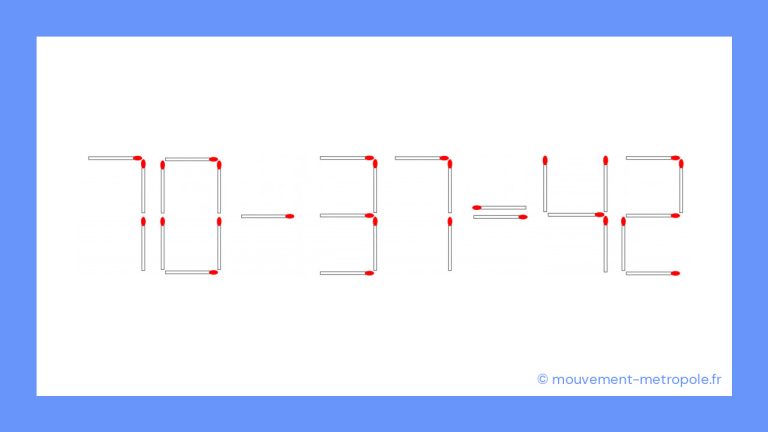Défi mathématique : Osez-vous déplacer une seule allumette pour transformer 70 – 37 = 42 en équation correcte en moins de 30 secondes ? il y a 2 ans