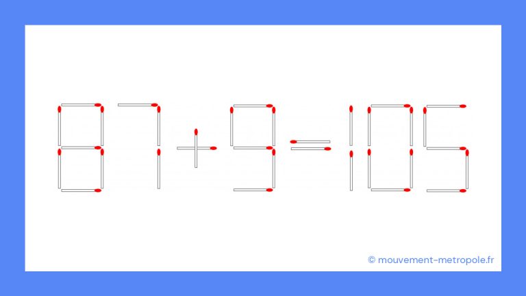 Défi des Allumettes : Résolvez 87 + 9 = 105 en 30 secondes et devenez un génie des maths ! il y a 2 ans