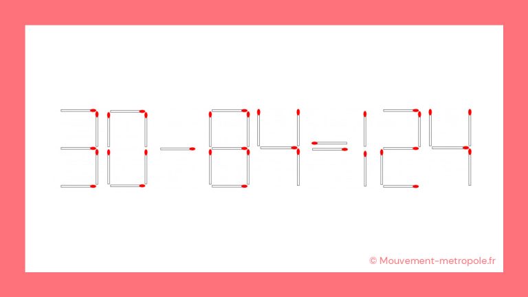 Défi mathématique : déplacer une seule allumette pour transformer 30 – 84 = 124 en équation correcte en moins de 30 secondes ? il y a 2 ans