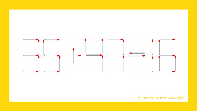 Défi des allumettes : saurez-vous transformer 35 + 47 = 16 en une équation correcte en déplaçant une seule allumette ? il y a 2 ans