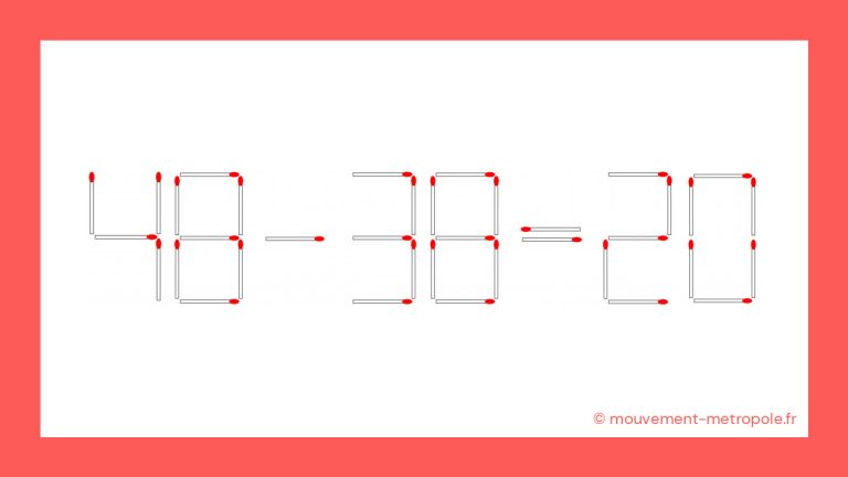 Défi des Allumettes : Résolvez l’équation 48 – 38 = 20 en déplaçant une seule allumette en moins de 30 secondes ! il y a 2 ans