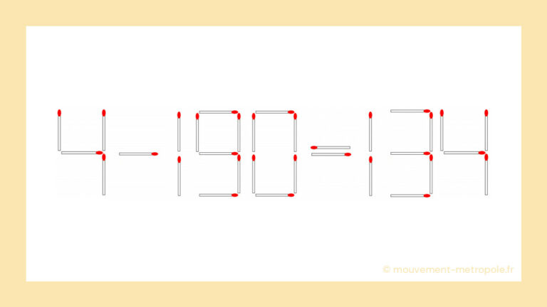 Le défi des allumettes : Saurez-vous transformer 4 – 190 = 134 en une équation correcte en moins de 60 secondes ? il y a 2 ans