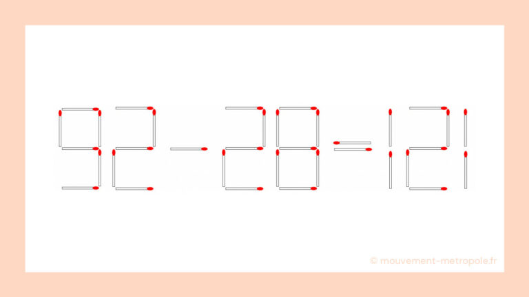 Le Défi des Allumettes : Saurez-vous rendre 92 – 28 = 121 correct en moins de 30 secondes ? il y a 2 ans